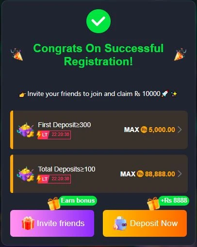 - Earn Extra via Referral.s Share your code—when friends join, deposit, and play, you get commission bonuses. Great for passive earning.
